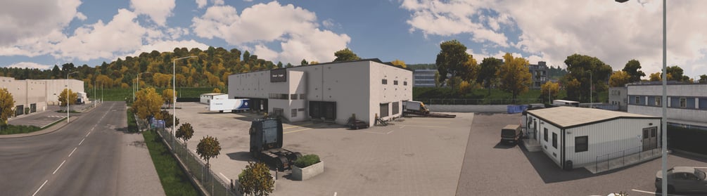 Description: This add-on adds a warehouse in Innsbruck, Austria. There are two versions of the mod. The first is the standard version, while the second is the version that has a custom billboard on which you can add your own logo, for example a company logo. In the area around the warehouse there is a parking lot, a place for refueling the truck and repairs. The warehouse also functions as a company from which you can take loads.
